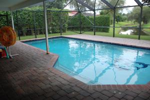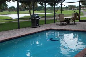 Rare 4 Bedroom, 2 Full updated Baths. Split floor plan, master on one side 3 Bedrooms on the other side. Full size pool overlooking spectacular and Breathtaking double fairway Golf, water and Sunset Views. Membership NOT Mandatory. Hurricane shutters. Pay and play. Walking distance to Houses of Worship.