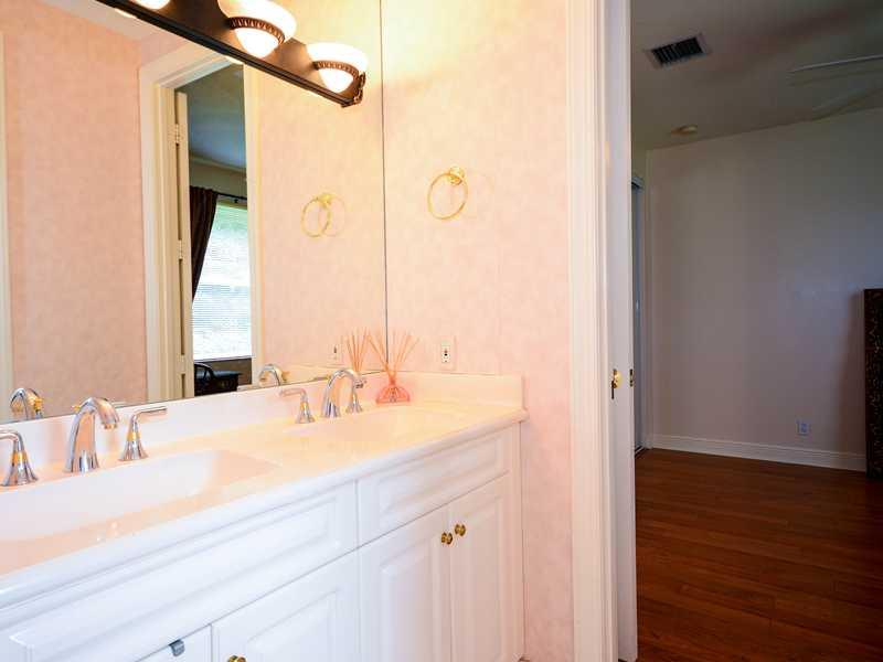Remarkable 1.1 acre pool home in gorgeous Whispering Woods! This stunning home has the best of everything! Beautifully manicured, private landscaping with covered patios! Updated gourmet kitchen with top of the line appliances and finishes, marble floo rs, triple split floorplan, volume ceilings w/ 8' doors, 4 car garage plus storage room, ornamental crown modeling with double coffered ceilings, over sized paver driveway, sophisticated master bedroom & master bath, game room, & manned gated entrances!!