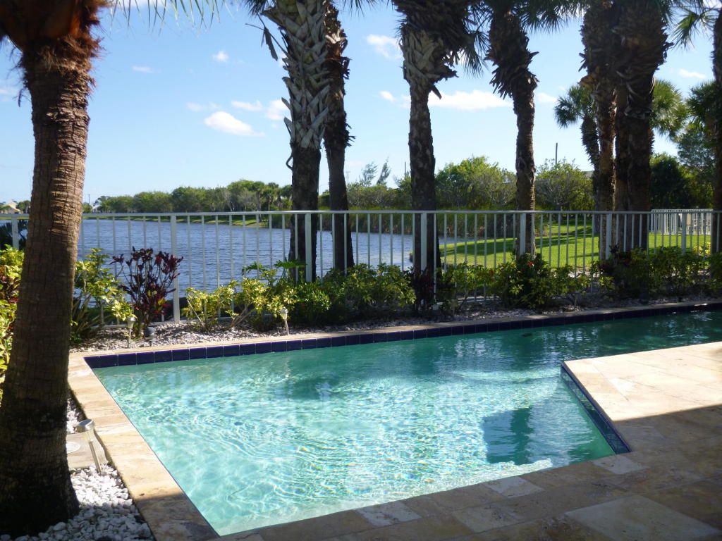 Best Lakefront view with water on 2 sides! Perfect 2BR, 2BA pool home in The Colony at Breakers West where club membership is NOT mandatory. Updated with wood flooring thru out, newer kitchen w/Kitchenaid stainless steel appl. Great Room w/fireplace. Elegant Marble Master Suite w/2 sinks,huge walk-in marble shower w/frameless enclosure & custom fitted closet. BR 2 has access to marble bath and opens to private patio. Opening from Great Room, Kitchen and Master Bedroom is a beautiful marble patio with heated lap pool & spa surrounded by lush landscaping and stunning water views of lg lake as well as the landscaped common area with its charming gazebo. Hurricane shutters, central vacuum. Newer roof 2002. At night the gazebo is lighted and lights twinkle off the water. A must see!