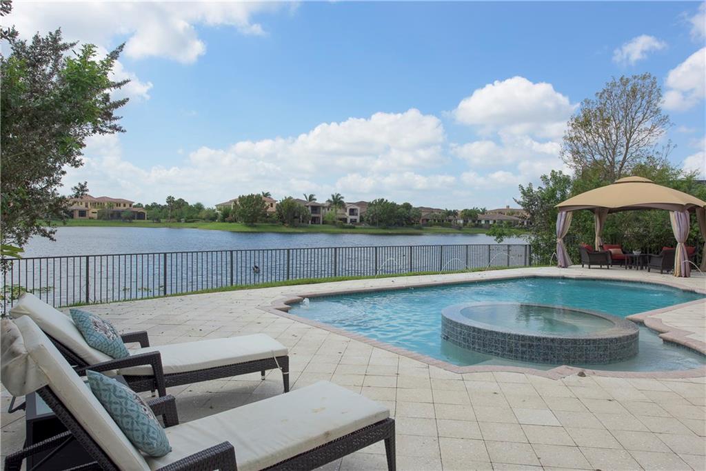 Exquisite lake front home in prestigious Parkland Golf and Country Club. Light & bright with soaring ceilings and windows, featuring 6 brs and 5 1/2 baths. Fabulous kitchen w island, double ovens and large pantry. Wet bar w alcove for wine cellar. Marble and hand scraped wood floors throughout. Grand master suite with sitting area. 3 balconies. Media/ game room/ retreat. Huge loft. Central vac. Impact widows & doors. Salt water pool with spa. Amenities incl dining, spa services, & resort style pools.