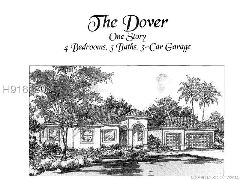 The Dover is a 1 Story, 4 Bedrooms, 3 Baths, 3-Car Garage home that sits on over a 35,000 sq ft lot on the Lake in a Gated Community. The residence features, Interlocking Pavers Driveway, Crown Molding, Wood Floors in Master Bedroom, Ceramic Tile Through out, French Doors, Screened Patio with Brick Pavers, Custom Window Treatment, Granite Counters in the Kitchen, Maytag Stainless-Steel Refrigerator, Frigidaire E-Range , Microwave and Dishwasher, Split AC System, Accordion Hurricane Shutters and more.