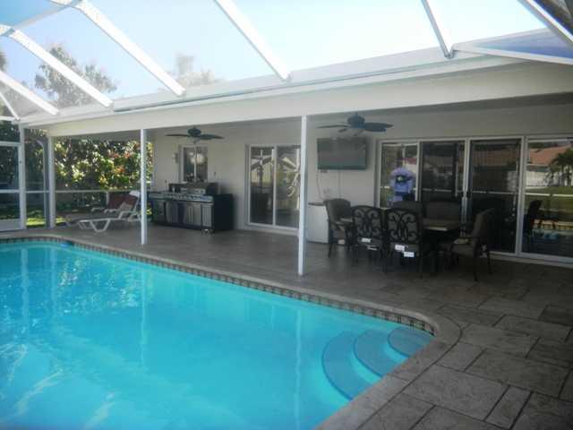 BEAUTIFUL 4 BEDROOM WATERFRONT HOME WITH GREAT LAYOUT FEATURES A CORAL WALL IN THE STEP DOWN LIVING ROOM, SEPARATE DINING ROOM WITH SKYLIGHTS & FAMILY ROOM. TOTALLY REMODELED KITCHEN & BATHROOMS. PORCELAIN 24 IN. ON DIAGONAL TILE THROUGHOUT AND KNOCK DOW N CEILINGS. PLENTY OF CLOSET SPACE. HURRICANE IMPACT WINDOWS & DOORS, NEWER ROOF & A/C, NEWER APPLIANCES. LARGE SCREENED PATIO & HEATED POOL WITH GREAT CALMING VIEWS OF THE WATER FOR YOUR ENTERTAINING PLEASURE. THIS HOUSE IS IMMACULATE!