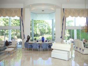 This beautiful and spacious 4-bedroom + office home offers spectacular lake and golf views that are visible through floor-to-ceiling windows in virtually every room. With 4,799 sq. ft. under air, the home features a split bedroom plan with a large master bedroom suite, an office with built-in wood cabinetry and two en-suite guest bedrooms on the main floor. An additional en-suite guest bedroom is located upstairs along with an expansive loft area. A bright kitchen with breakfast area opens to a large family room. Situated on a cul-de-sac street with multi-million dollar homes.