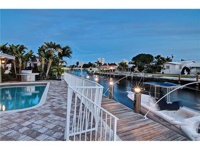 Watch the boat parade from the pool deck of this stunning remodeled open floor ocean access deepwater with direct ICW views. Home boasts two en suites,walut floors. Fabulous custom designed chef's kitchen with antique maple wood cabinets, granite counters , tumbled stone backplash, SS appliances, expansive island with wine cooler, Impact French doors, 2 zone a/c. Immaculate mexican tile, newer roof and 50' dock with electric, lush landscaping, sought after southern exposure,Cul De Sac street. A MUST SEE!