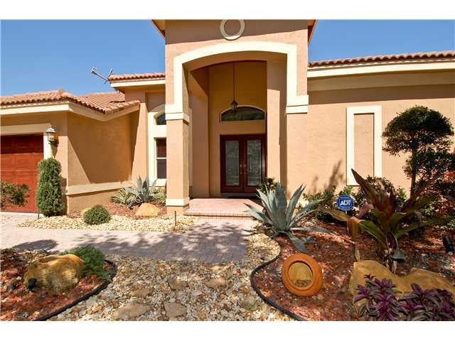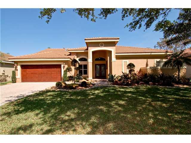 Elegant & well built pool home offers a modern triple split floorplan with 4 true bdrms, 3 baths, & 12' volume ceilings. Too many features to list: upgraded kitchen with Giallo Fiorito granite countertops, 42'' wood cabinetry, tumbled marble backsplash w decorative glass inserts, French doors, large master bedroom, walk-in closet, & bathroom with separate tub w jets & shower...Excellent Coral Springs location & schools. Walk to Stoneman Douglas High & Country Hills Elem. Across from North Community Park