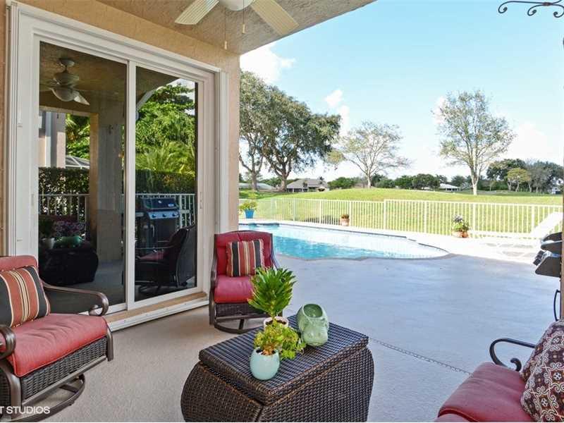 Let's just say its a honey for the money! Rolling greens & water features of meticulous golf course are your views from almost everywhere in the home. No requirement to join private golf club. Large patio-pool, fenced yard. Updated kitchen & custom remode led bathrooms. Accordion hurricane shutters, crown moldings; move in ready & quick occupancy avail. for this picture perfect 3 BR with separate den/office, easy to convert to 4th BR. Tennis incl. in HOA. Path behind home is service path, not for golfers