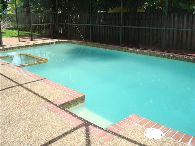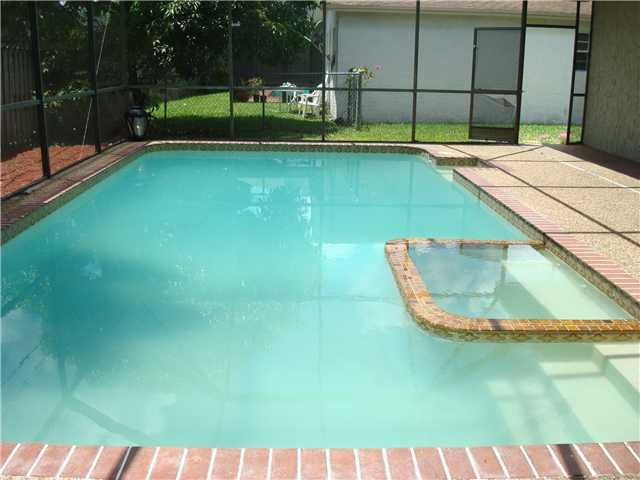 GREAT FAMILY HOME, UPGRADED BATHS, TILE FLOORS, FRENCH DOORS LEADING TO PATIO AND POOL AREA, ACCORDIAN HURRICANE SHUTTERS, FRESHLY PAINTED INTERIOR, CIRCULAR DRIVEWAY, NEWER ROOF, GREAT AREA, SPA IN POOL, SHOWS VERY NICE!