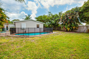 Great value in this concrete block 3 bedroom plus den 2 bath pool home with open floorplan. The kitchen has been updated and features gorgeous silestone countertops. Step out to your huge backyard and prepare yourself for hours of outdoor entertainment by the pool and pavered patio. The generous yard is fully fenced and truly creates a backyard paradise to escape to complete with sparkling pool and mature, swaying palms. Great location with easy access to Downtown Gardens and West Palm Beach. The community has no HOA fees and is close to well maintained park! In this very competitive price point you will be happy to find a move in ready, well maintained home with a pool and fenced yard. This home will not last long.