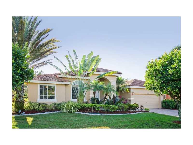 Impeccable home. A - Rated school district. City's best restaurants & entertainment. Open floor plan, 12' volume ceilings, 18" tile thru-out, wood finished floors in bedrooms. Master suite with sitting area, large walk-in closet,10' tray ceiling, master b ath dual sinks, roman tub & shower. Maple cabinets & granite counter tops. Custom design window treatments & tinted. Recently painted exterior, newer A/C, S-tile roof. Covered lanai 27'X8' paved ideal for entertaining. Close to Coral Square Mall. Must see