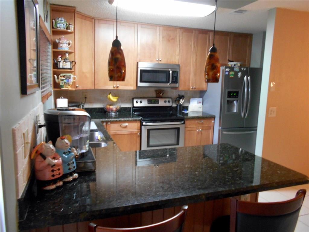 Just Listed! This 4 bedroom home is beautifully updated. The kitchen has wood cabinetry, granite counters and stainless steel appliances. Both bathrooms have been redone tastefully. There are wood floors in the living room and master bedroom. Interior laundry room with large capacity washer and dryer. Great split bedroom floor plan. Large screened patio overlooking the pool area. Very private backyard. A truly nice, open floor plan, great for entertaining and comfortable living.