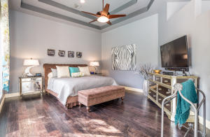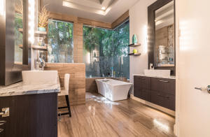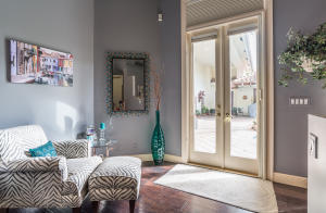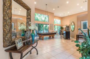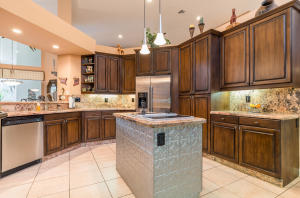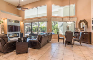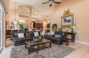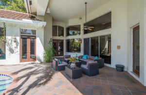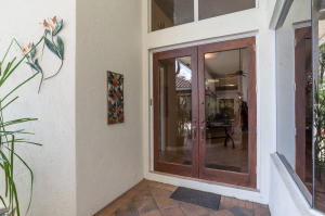 Single story courtyard home in the fabulous Seasons community. Updated kitchen, granite countertops, Jenn Air cooktop, 2 sinks, stainless appliances. Family Room includes an electric fireplace. Bedrooms have hardwood flooring. Master bathroom renovated with Carrara marble vanity tops, natural stone flooring, all new sinks, shower, tub. Large walk-in Master Bedroom closet with custom closet organizer. Split bedrooms with children's wing. Separate guest house. 3-Car garage professionally outfitted for optimum storage by Garage Tek. Hurricane storm panels. This home is situated nicely on a quiet street. Don't miss this great home!