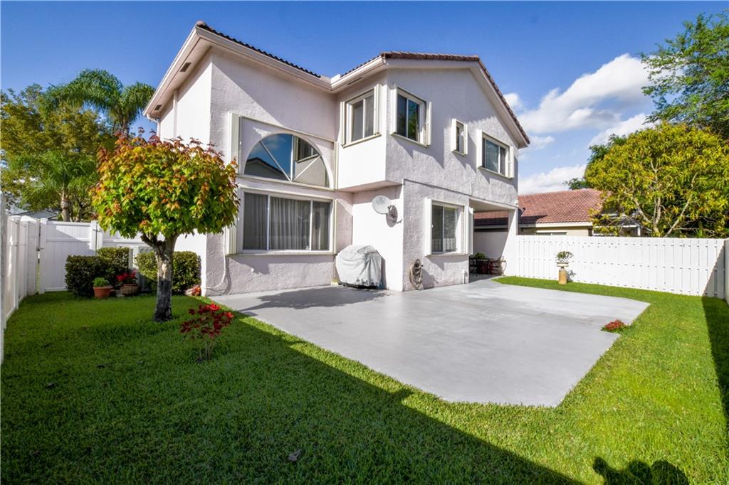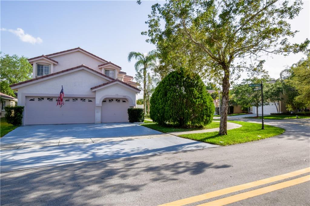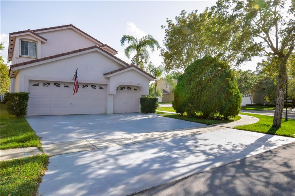 UPGRADED 4/3 Corner Lot with 3 car garages. Very well maintained. 1 bedroom & full bath downstairs. Separate Living Room, Formal Dining Room & Huge Family Room. Open style upgraded kitchen has breakfast area with big window. Big Master Bedroom has 2 close ts. Many upgrades, Accordion Shutters on all windows, Wood Blinds, New Kitchen Appliances and Air-conditioning unit. Upgraded bathrooms. New water filter in kitchen. Fenced backyard with new fence, has space for a pool. Freshly painted. Gated Community.