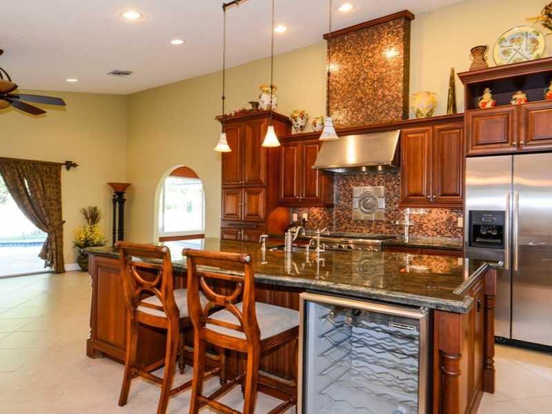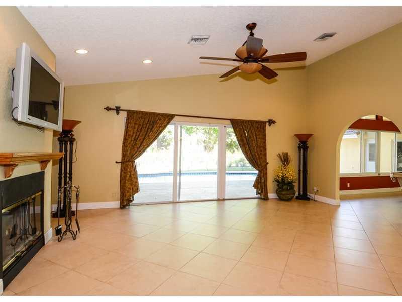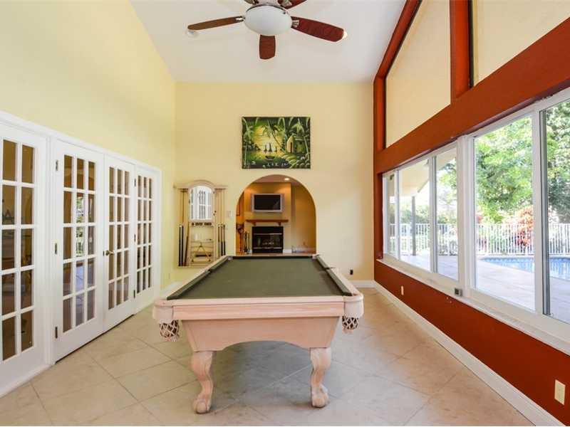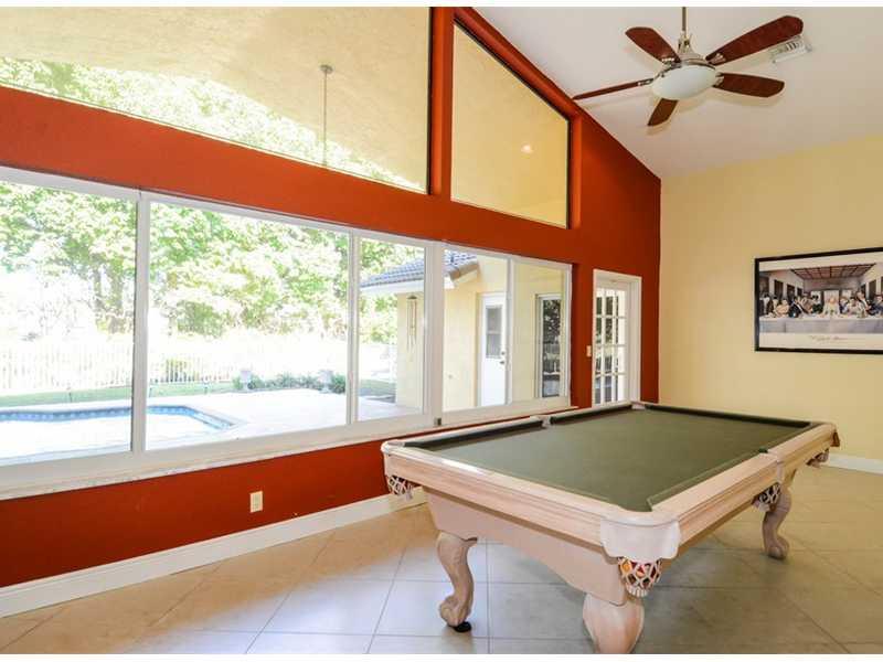 Pie shaped over sized lot at cul de sac. Bonus room perfect for playroom. Impact windows, newer roof, State of the art remodeled kitchen rich wood cabinets & hutch at breakfast room, six burner gas stove, granite counters, mosaic backsplash, stainless st eel appliances, stone look floors laid on diagonal, hi vaulted ceilings, fireplace in family room. Fenced pool and large yard with room for playing ball. Big covered patio. 24 hour guard gated community close to Sports Complex, shopping & restaurants.