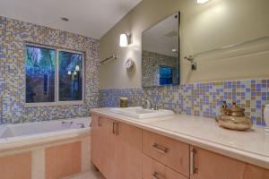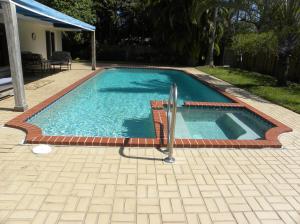 3BR 2.5 BATH HOME ON LARGE CORNER LOT WITH COURTYARD ENTRYWAY ~ KITCHEN WITH NEWER APPLIANCES ~ NEW CABINETS AND WASHER AND DRYER IN LAUNDRY ROOM ~ AC REPLACED IN 2013 ~ STORAGE ROOM OFF OF GARAGE ~ SPLIT BR PLAN ~ LGE OPEN POOL & SPA ~ LARGE YARD WITH NEW FENCE ~ UPDATED ELECTRIC PANEL ~ WOOD FLOORS IN BEDROOMS, CUBAN TILE IN LIVING AREAS ~ LUSHLY LANDSCAPED PROPERTY