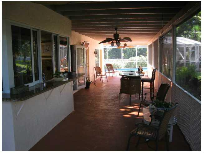 Well maintained home featuring 1/4 acre lot w/60'X15' covered patio & pool area w/view of scenic water way. Remodeled kit w/cherry wood cabinets, granite counter, S.S. appliances, 18' tile throughout living area. Hard wood floors in bedrms & dining Rm. paver driveway, roof & A/C approx. 8 yrs new. French door, cul-de-sac lot, 4th bedrm can be used for either bedrm or office, sprinkler system & pool light as-is.