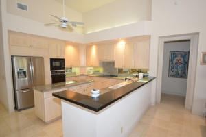 Beautiful one-story home in prime location with expansive lake and golf views. Situated on a quiet cul-de-sac street, this home features a Contemporary interior with clean lines, marble floors, lots of natural light, and an excellent floor plan that highlights the incredible views. Living room with wet bar; custom library/office with etched glass doors, master suite with exercise area, his & her baths, and generous closets. Kitchen opens to family room & breakfast area. All guest bedrooms are en-suite. Outdoors, a circular driveway, accordion hurricane shutters, a large screened-in lanai with Summer kitchen, sunny patios, large pool, and gorgeous lake and golf views.
