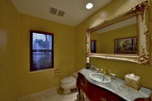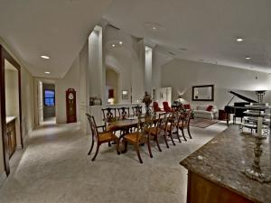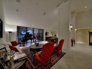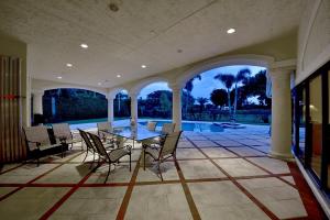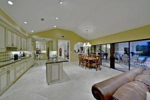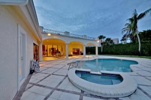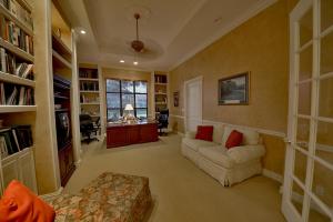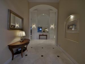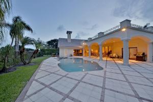 A grand entry foyer opens to a living room and dining area which showcases an expansive covered patio, pool with waterfall spa and golf course vistas. Master suite with separate bath and closet areas; oversized office and expansive kitchen with breakfast and family room with fireplace. Two bedrooms share a full bath with an additional main en-suite fourth bedroom. Renovation included new elevation with cast stone columns, library, roof, neutral marble flooring, kitchen and bathrooms, new appliances and a/c systems. Originally built in 1983. Dramatically and extensively renovated in 2001.