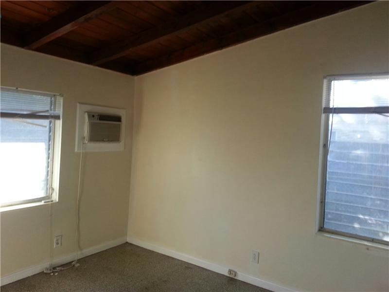 This is a 3/2 with vaulted exposed wood beams. Tarrazzo floors thru-out that are in very good condition, however in need of being polished.Lots of Florida charm. Large tropical yard, carport with laundry & storage room. very large screened covered porch that will be great for kids to play in and or parties. Very large floor to ceiling original windows in the front and back of the completely open living area. Front overlooks the porch, back overlooks yard. does not have central A/C, has good wall units.