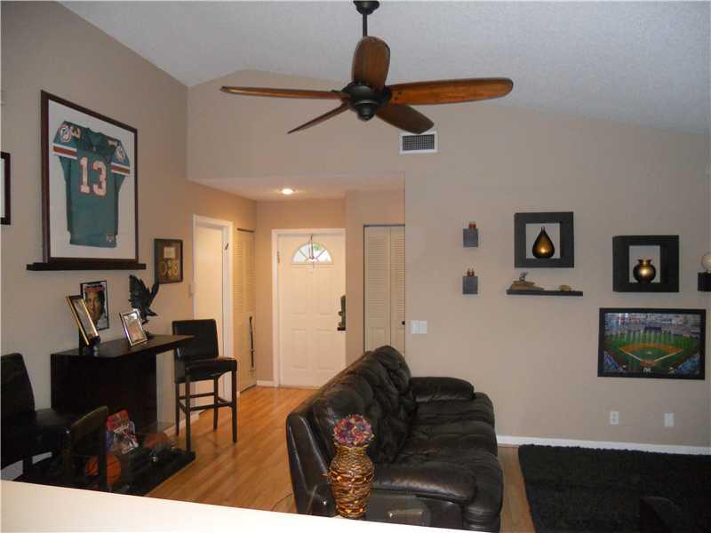 Watch beautiful sunsets in this lakefront charmer. Two bedrooms plus 1/2 of the garage converted to air-conditioned 3rd bedroom. (Can be converted back to full size garage). Open floorplan. Newer roof. Accordion hurricane shutters. Clean and move-in condi tion. Quiet cul-de-sac. Close to schools, shops, park and pool. Washer/Dryer excluded