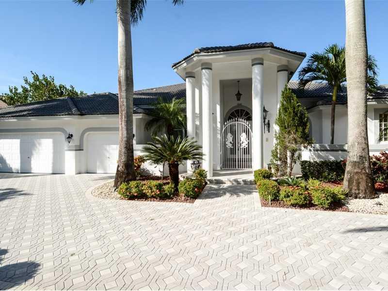 Grand estate home on tree lined street of exclusive residences. 1/3 acre, lushly landscaped lot with specimen palms surrounding huge circular drive. Gate entry to elegant portico. Enormous paver patio, loggia & outdoor kitchen. Contemporary Carrera marble throughout. Hi volume ceilings & desirable split bedroom floor plan. Huge master suite with luxurious bath, custom built ins & designer fixtures. Closet room can be bedroom or office. Resort style pool and raised spa. Big home, huge value !!