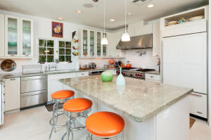 Beautiful Spanish Mission style home on Flagler in El Cid with direct Intracoastal views. Completely renovated in 2009 including impact windows and doors, Icynene insulation, new electrical, plumbing, tankless water heaters, new roof and much more. Gourmet kitchen with water views, large master bath and full dressing suite. Two sets of W/D's. New pool added during renovation. Main house has two bedrooms and a den and separate guest apartment over garage. Completely secure and gated property with abundant lush landscaping offering total privacy. Meticulously maintained. A must see.