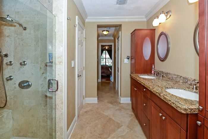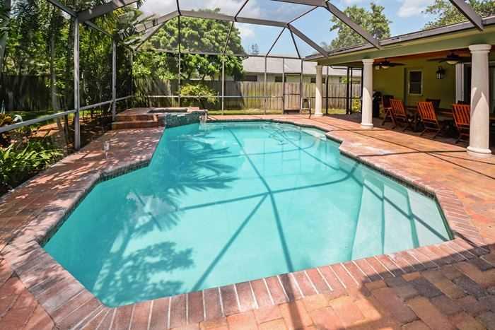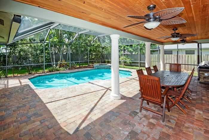 This impeccably maintained home has it "ALL". Ocean access 50ft dock w/ele & wtr 10K boat lift gated/slab parking for boat or RV. Relax at your beautiful screened heated pool with spa and water feature. This home is a decorators dream from the crown mold ing to the hardwood flooring-the updated kitchen is open to the living space- split bedroom plan impact windows/accordion shutters pavers front and back privacy fenced -tankless hwthtr-softener system- alarm system with cameras- quiet cul-de-sac location
