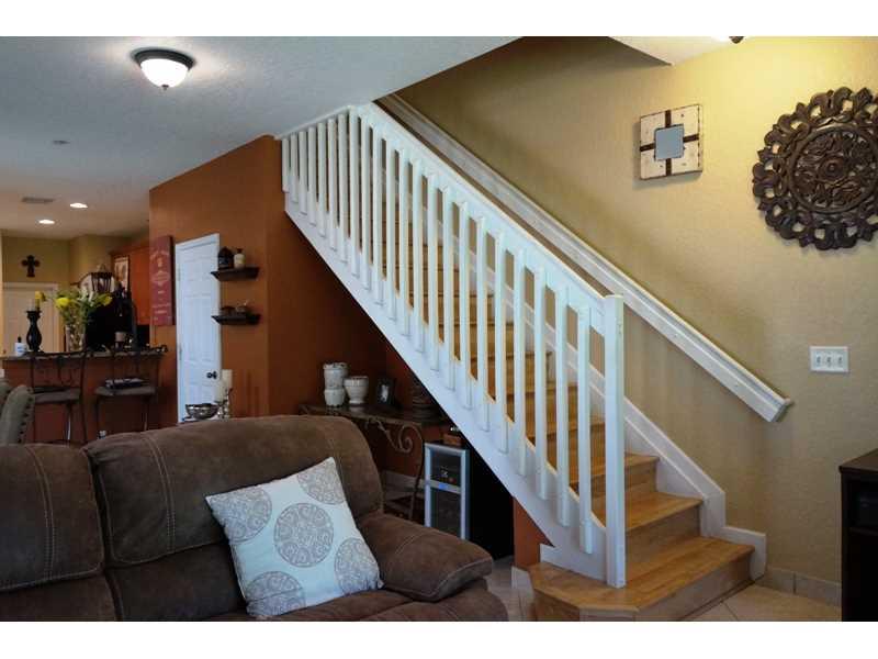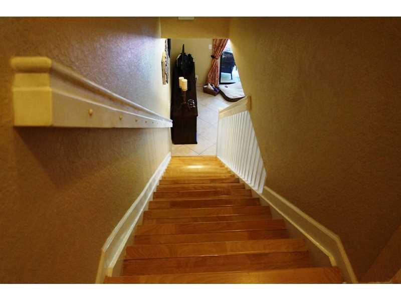 This spacious 4 Bedroom 2.5 Bath Townhome is located within the elegant Courtyard at The Grove community in Weston. Corner unit backs up to private berm and secluded wetlands. Remodeled kitchen with 42' wood cabinets, granite countertops w/full backsplas h & top of the line S/S appliances. Upgraded features include diagonal tile and laminate wood flooring, textured walls, custom int. paint, alarm sys, LG front load W&D and rear covered lanai. Full size 1 car garage. Immaculate home, shows like a model.