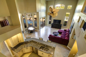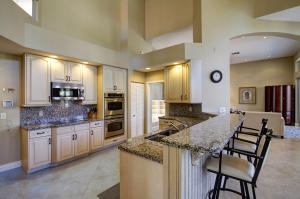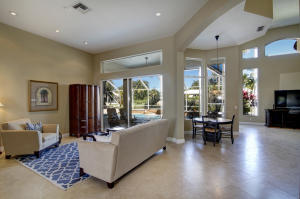 This spectacular lakefront home is situated on an over sized pie shaped lot with incredible views. A resort style pool and ample grassy back yard space make this home a rarity. This Palm Beacher model is on one of the best lots and includes many upgrades. It features a bright updated kitchen with custom light wood cabinetry, stainless steel appliances, thick granite countertops and double ovens. The large master suite has Californian closet space and the bathroom has dual sinks with granite counter, double showers and a separate jacuzzi tub. This is a true split floor plan with high volume ceilings. For convenience, a laundry chute was designed from the second floor to the laundry room, which has a commercial grade washer.