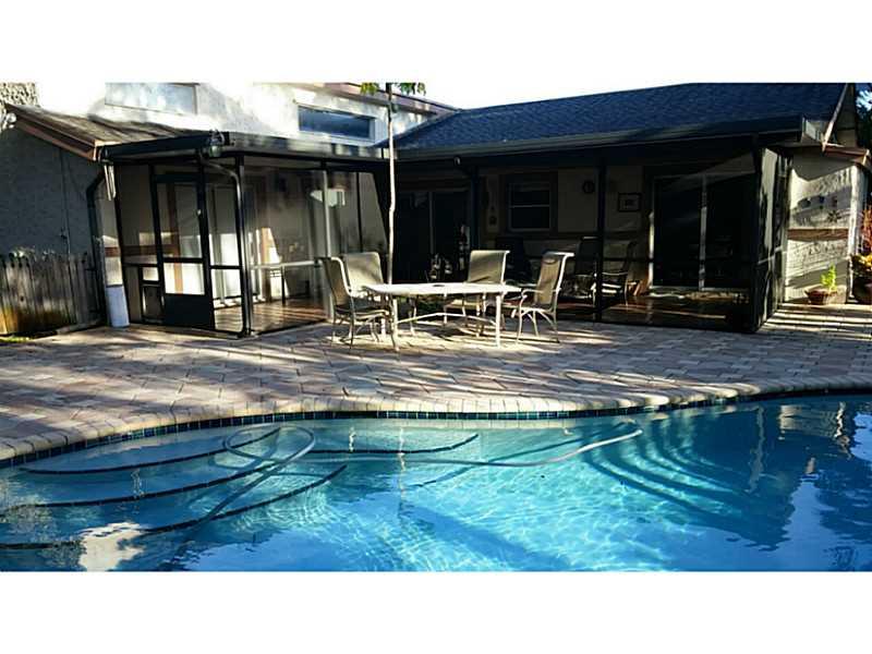 Move-in Ready Bright & Spacious with fixed windows and Vaulted Ceilings, Split B/R Plan. Updated Kitchen: Wood Cabinets, Granite Counters, Stainless Appliances. Wood Floors in Living Areas, 5" Baseboards and crown molding. Screened-In Patio, Salt System P ool W/Hot Tub. Ample Storagel Built-In's! New Master Bath:Custom Cabinets, Double Sink, Double Shower w/Glass Block. Movie Room/2-Car Garage w/AC. Private Fenced yard. Storage Shed. No HOA Split Bedroom plan. Storm Shutters