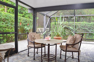 Beautiful renovated home with 2CG on private preserve lot with South exposure, 24 Hr manned gate, designer kitchen and baths, designer Whirlpool appliances, front load washer/dryer, roof replaced in 2007, two story home with 2 master suites (one up, one down), 18'' tile throughout main living area, vaulted ceilings, wood stairs, plantation shutters throughout, crown molding throughout, Impact garage door, accordion and roll down shutters, A/C is only 3 years old with 2 stage system, large screened patio, community pool, beautiful tennis center and aquatic complex next door.