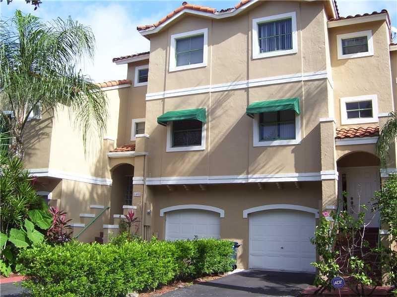 FABULOUS TRI-LEVEL TOWNHOME! HIGHLY UPGRADED KITCHEN & ALL 3 BATHS; GRANITE COUNTER TOPS, WOOD CABINETRY, SS APPLIANCES AND LIGHTING! NEW WOOD LAMINATE FLOORS THRU-OUT. (NO CARPET OR PETS)1st FLOOR HUGE FAMILY IS TILED & LEADS TO PRIVATE PATIO. 2 MASTER B EDROOMS- WITH PRIVATE BATHS ON TOP FLOOR. 1 CAR GARAGE WITH AUTOMATIC OPENER, STORAGE, WASHER & DRYER. RECENTLY PAINTED INSIDE & OUT. BALCONY OFF-LIVING RM. COMMUNITY POOL & PLAYGROUND. FURNITURE NEGOTIABLE. 15 MINUTES TO BROWARD COLLEGE, NOVA UNIVERSITY.