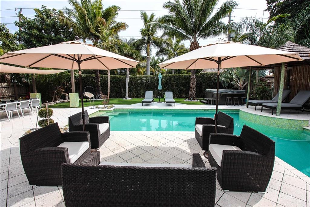 Incredible Resort Style Pool Home in Poinsettia Heights. Designer flair abounds! Kitchen features high-end appliances and cabinetry...Thermador, Fisher Paykel, Miele. 30 in. Built-In wine cooler. Glass tile and marble baths are magazine quality. Low-maintenance yard outfitted with artificial turf, resort style pool w/tiki cabana, outdoor bar w/built-in grill & dramatic outdoor lighting! This home is truly an entertainers dream, minutes from Wilton Dr., The Beach, and Downtown Ft. Lauderdale.