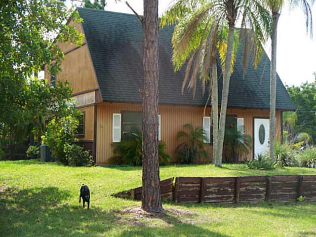 Back on the market!! Spend a little TLC and make this house your dream home! A two story house on a high and dry 1.53 acres lot with plenty of potential. 2 canals provide for good drainage, no need for a pond. The kitchen is spacious with a new stove and French Doors out to the 30'x12' deck. Cozy loft that overlooks the cedar vaulted ceiling. A 30'x3' balcony on 2nd floor with access from both 2nd floor bedrooms overlooks starfruit and honeybell fruit trees.