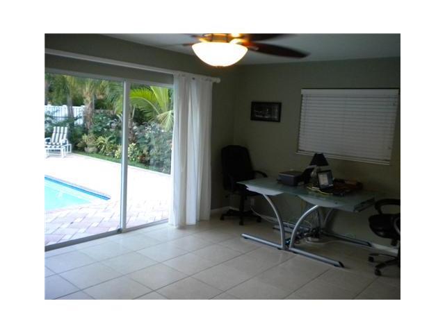Beautiful and spacious Coral Ridge Country Club pool home featuring 3 large bedrooms, 3 full bathrooms (one cabana bath), remodeled master bath, 2 zone A/C, interior laundry room, accordian shutters and a 400 sf family room with wet bar, refrigerator and wine cooler(family room can be converted back to a garage - or make it an in law suite with its own entrance). All rooms open out to the pool area with sliding glass doors that retract.
