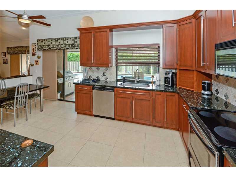 Beautifully upgraded 4/2 pool home in the quiet community of West Glen! Stamp concrete circular driveway & patio, new kitchen w/wood cabinets, granite counters & SS appliances, hurricane impact doors, 2007 S-tile roof & 5-ton A/C, master bath upgraded w/T ravertine, granite counters, step in shower & Jacuzzi tub, upgraded guest bath, walk in closets plus extra closet in master, 18x18 tile w/decorative inlay in foyer, recessed lighting, crown molding, 2009 diamond bright pool & gutters. THIS IS A MUST SEE!