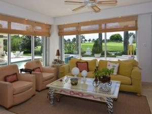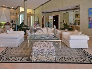 Spectacular lakefront home with gorgeous golf vista. There is a sit down bar in the living room. Featured is a bright and open flowing split floor plan. Four bedrooms plus office/media room, plus loft, plus maid's room. The downstairs spacious master has fantastic views and features abundant closets. There are two walk-in gentlemen's closets and the Hers walk-in closet is every woman's dream at 26 x 9 ft. His and Hers bathrooms with His doubling as a cabana bath. Every bedroom is en suite. Downstairs there are 3 bedrooms plus maid's bedroom off of laundry room. Upstairs there is one bedroom and a private loft and balcony overlooking the pool, lake, and golf. The downstair's are two beautiful guest bedrooms, and one is a mini-master. The sculptures in the yard are excluded.
