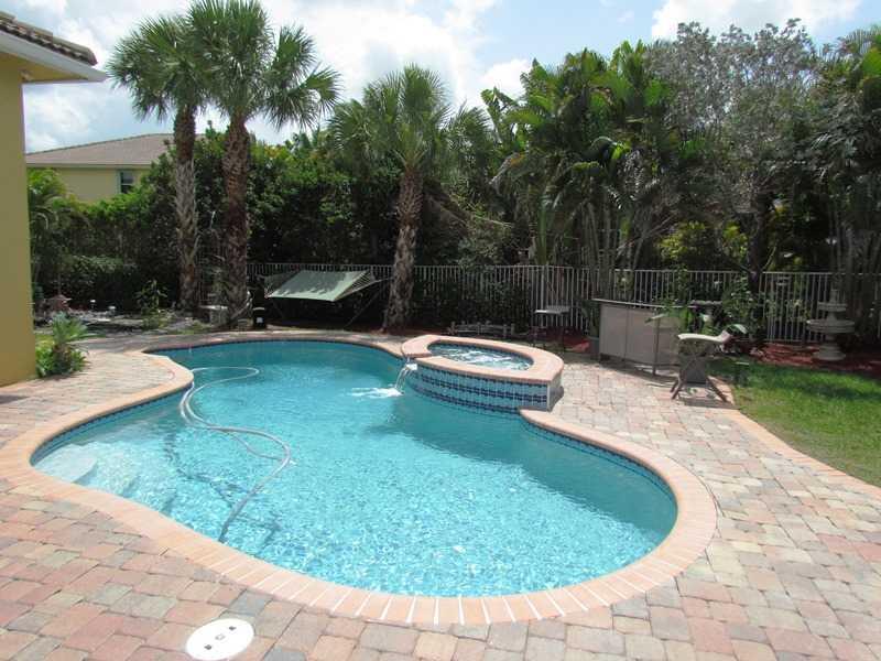 5/3 Pool and Spa home with a 3 car garage in a Top Notch Community of Savanna in Weston. Kitchen is updated with high end granite, stainless steel appliances, and 42in cabinets. New engineered wood flooring in bedrooms. High Ceilings. Backyard is fenced with pool & spa w/ brick pavered, patio & large overhang. Lush Landscaping. Community has an amazing Clubhouse Pool with water slides and children golf available.