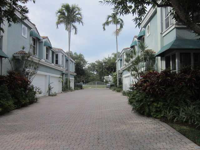 Upscale townhome in gated community, walking distance to Las Olas. 3 bed 2 1/2 bath townhome w/ new real cherry wood floors, wood fireplace on coral rock wall & crown molding throughout. New roof this summer, accordion shutters, & 2 car garage. Kitchen is upgraded with granite countertops, top of the line appliances(sub zero & kitchen aide)Bar w/ wine cooler off living room.Inside laundry w/Maytag W/D. 3 linen closets and 58 feet of hanging in closets. Bathrooms all marble. Property is getting a new roof.