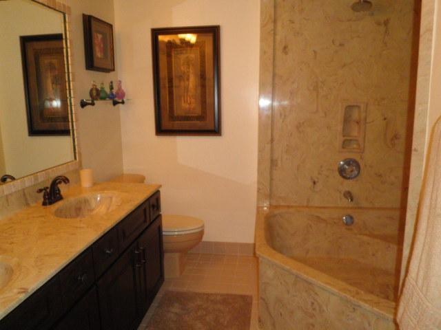 Beautiful 3 bed 2.5 bath townhome w/ garage & w/the best upgrades. 18" diagonal tile thru living area, upgraded eat-in kitchen with S/S appliances, granite counter tops, new cabinets, nickel fixtures in sink, French door refrigerator, garage w/electric op ener & storage, steam full front loader washer/dryer, new knock down paint inside, new half bath, patio & front walk stamped concrete, Berber carpet upstairs, beautiful screened in patio, guest bed vaulted ceiling, 2nd bath upgraded granite/new vanity.