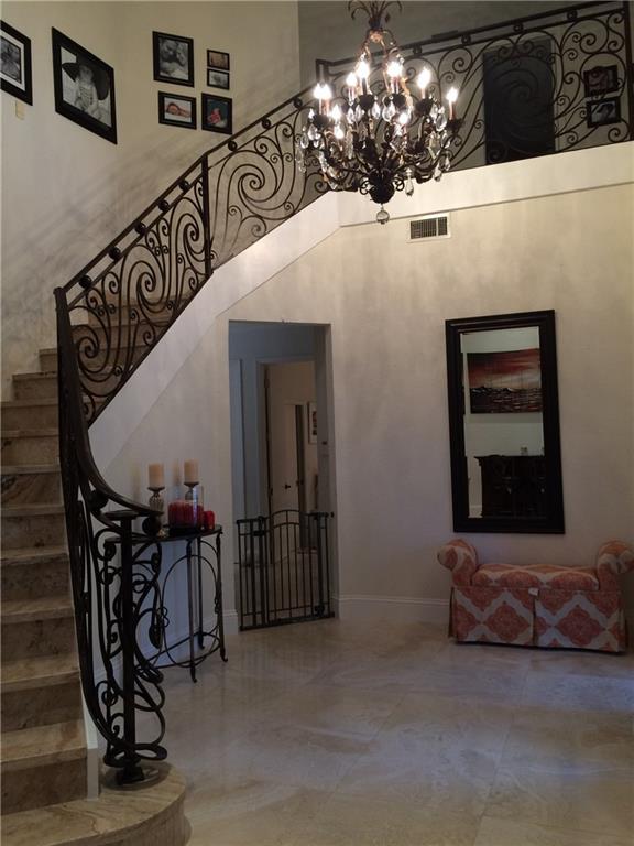 Beautifully remodeled Mediterranean home in the gated Boca East Estates community. This 4 bedroom/3bath + a bonus office room features 24" Italian marble floors, heated pool, oversized lot, all impact windows/doors, California closets, and central vacuum. This tastefully decorated home features an enormous kitchen featuring an island and sub-zero refrigerator, Miele cook top, marble throughout, and impressive landscaping. Pool view from Master Bedroom & Patio accessible from dining room/kitchen