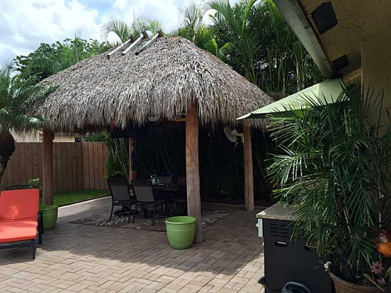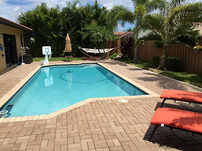 WOW... Remarkable and Completely remodeled home with no expenses spared! The kitchen is upgraded with wood cabinets, stainless appliances, granite counters. Beautiful wood floors throughout the home with a new roof, impact hurricane windows & custom impor ted front door. The master suite is a sanctuary with a custom shower, claw foot soaking tub & a built-in luxury TV in the mirror to view from bed. The back yard is fenced and is very private with a tiki patio fully wired over looking the pool..plus more