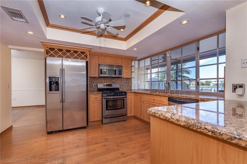 Spectacular Lake View on this 4/2 Waterfront Home. Property features Granite Kitchen with Stainless Steel Appliances, updated bathrooms, Circular Driveway, 2 Car Garage. The home has a split bedroom plan featuring an enormous master bedroom! 2 car garage is currently converted to 5th bedroom but is an easy conversion back to garage.