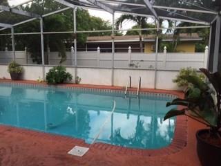 This adorable 3/2 home is located on a corner lot in a desirable neighborhood of East Miramar. The well maintained home features a large screen enclosed salt water pool and patio area as well as additional outdoor space with a deck surrounded by mango, lychee and avocado trees. The house is also surrounded by beautiful white privacy panel fencing. A converted air conditioned garage provides extra space for an office, gym or family room. Must see!