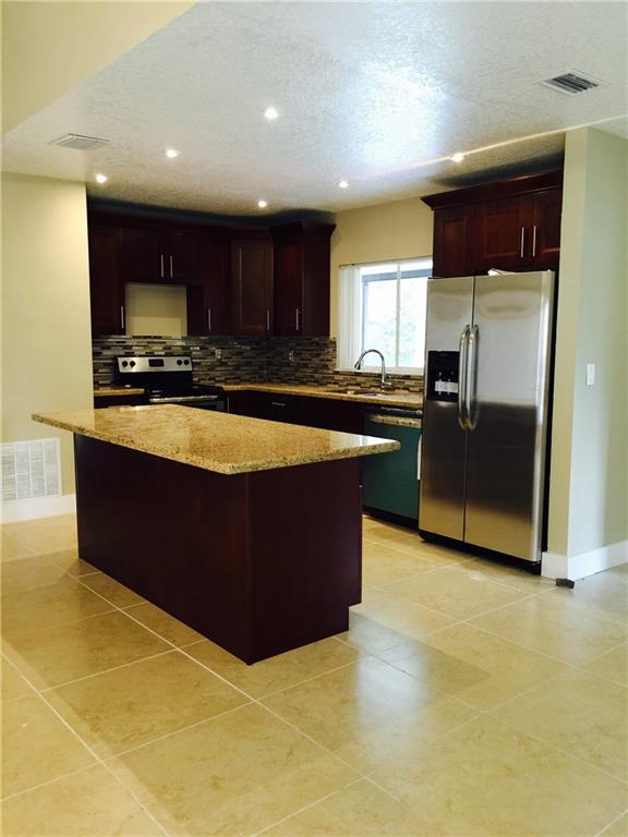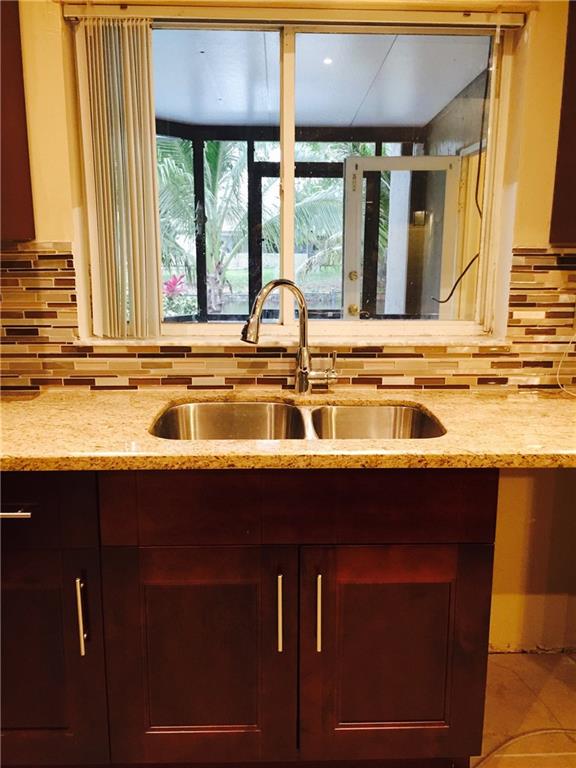 Newly remodeled -Vacant - Brand new wood kitchen cabinets with granite counters, granite covered island, all brand new Stainless Steel appliances, bathrooms with new tile, wood cabinets, granite counters, new tub and plumbing, brand new ceramic tile throughout, very private landscaped pool area with beautiful canal view