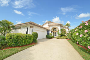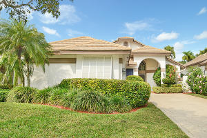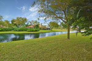 This two bedroom plus den home sits on a beautiful lot with a private back yard and expansive lake view. Some of its features include an open floor plan, volume ceilings, newer washer and dryer, roof approx. 8 years old, new insulated attic, and a large patio with an overhang for shade. Don't miss out on this wonderful home in the award winning Country Club at Broken Sound. Membership required.