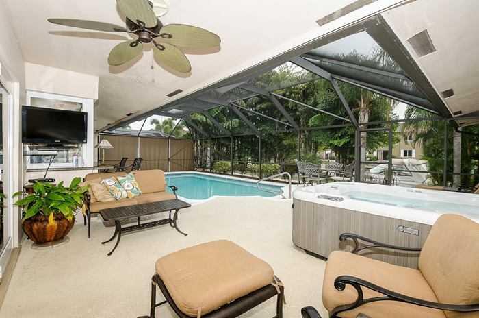 Bring your boat to this tastefully updated (approx 2005) and spacious waterfront home located in sought after Landings neighborhood! Huge over-sized family room (could easily be converted to a two-car garage), generous sized master bedroom with serene vie ws of the pool & water. Eat-in kitchen w/ granite counters, formal living room w/ marble flooring and Impact French doors leading to spacious screened patio/pool area with hot-tub. Just minutes to beach, shops and fine restaurants.