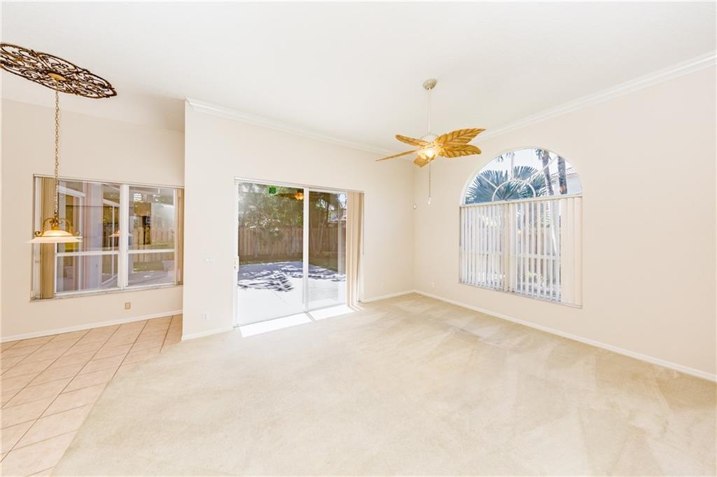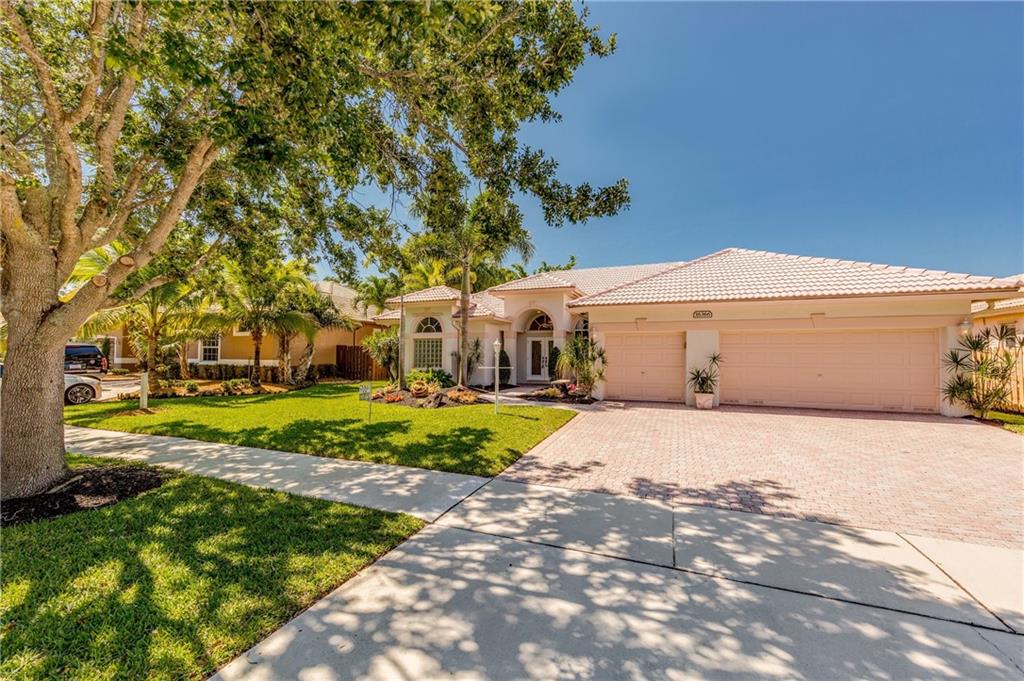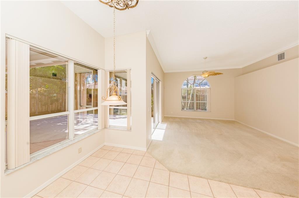 Immaculate Yale plan w volume ceilings & large open living areas. Entire interior was just painted. Separate formal living & dining rooms, big eat-in kitchen w plenty of oversized cabinet/counter space & pantry. Spacious family room and triple split bedr oom layout. Covered patio overlooks large tropically landscaped, fenced yard. Plenty of room for a big pool. New 14 Seer Rheem Ac w 10 yr guarantee, appliances less than 1 year old. AC Laundry room, 3 car garage. Maint includes HD cable, DVR, alarm.