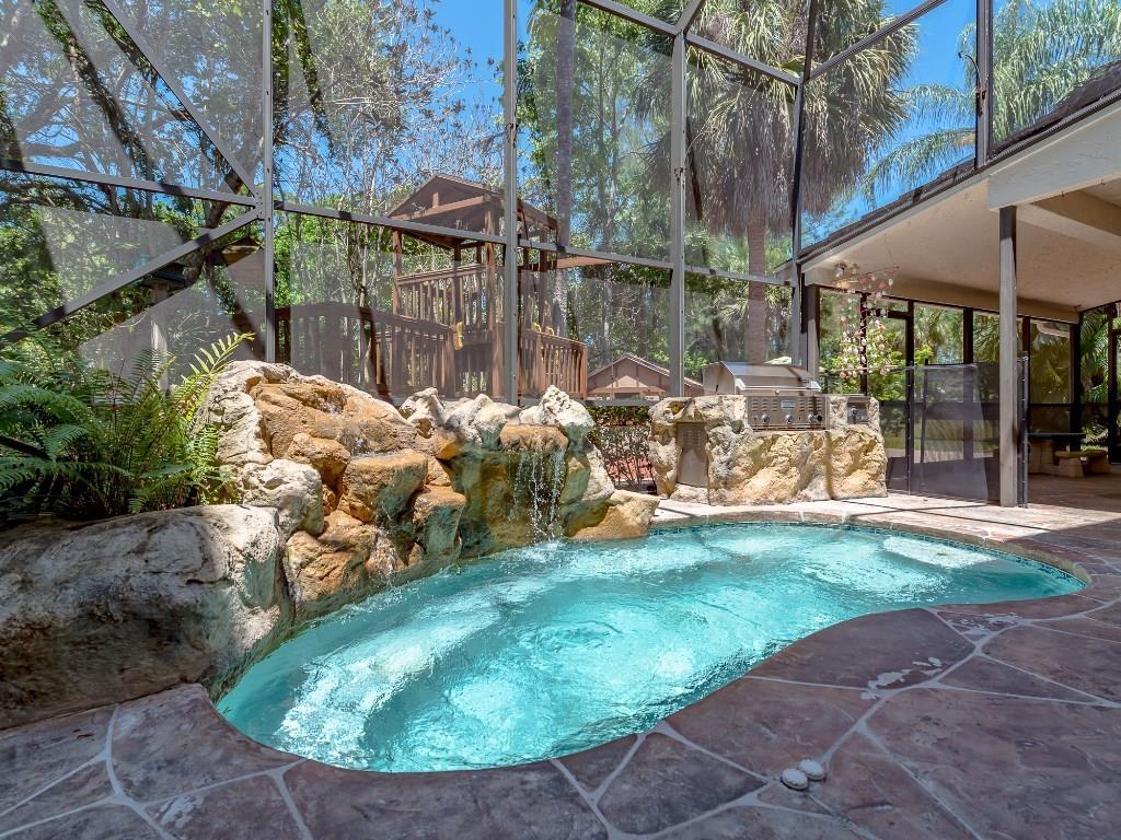 5 BED 3 PLUS A HALF BATH ESTATE POOL HOME LOCATED IN THE PRESERVE, A GUARD GATED NEIGHBORHOOD. THE INTERIOR FEATURES CROWN MOLDINGS, WOOD FLOORS, A WOOD KITCHEN WITH CORIAN COUNTERS & NEW STAINLESS STEEL APPLIANCES. FIRST FLOOR MOTHER-IN-LAW SUITE WITH SITTING AREA AND FULL BATH. EXTENDED MASTER SUITE UPSTAIRS. LOFT THEATER, LARGE SECONDARY BEDROOMS W/ WALK-IN CLOSETS. THE EXTERIOR HAS A HEATED JET POOL W/ NEW MOTORS ON POOL PUMP, SCREENED PATIO & BUILT-IN BBQ GRILL. LARGE FENCED LOT ON A PRIVATE CANAL.
