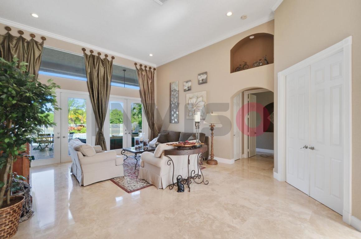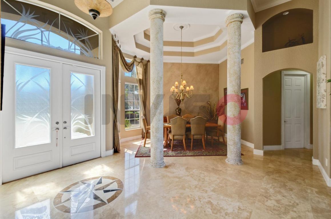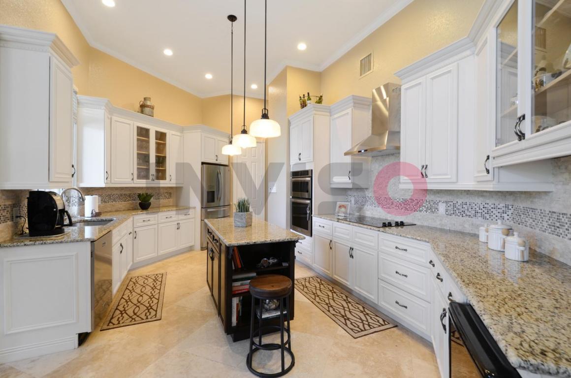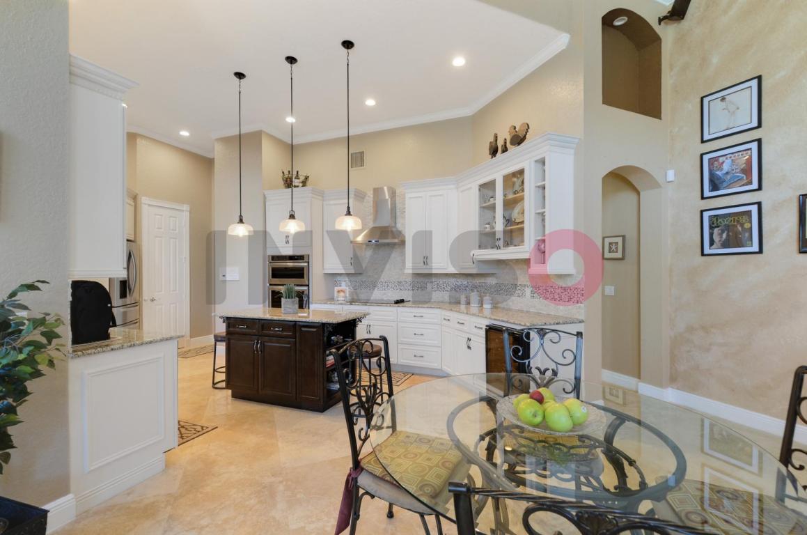Beautiful 4/3.5 PLUS den HUGE home. Almost 3500 living SF Completely remodel in 2015. New kitchen, new bathrooms, travertine floors throughout, wood floors in 3 bedrooms, magnificant entry, 12' ceilings, kitchen has 42'' wood cabinets, granite, large island, lots of natural light, master bedroom overlooks pool & lake. Has 2 large custom built walk-in closets. Master bath is HUGE. Den has built in bookcase. Putting Green in the back. And many more amenities.