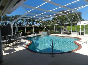 Spectacular Tropical Oasis Pool Home with Jacuzzi on over 3/4 of an acre lot. Perfect for Outdoor Entertaining, with high end salt water pool and 2 screened patios. Located in the gated community of Crescent Lakes with the largest lot, this private corner home, offers an upgraded chefs kitchen with updated appliances, granite counter tops and all the chef's bells and whistles. Enjoy an open floor plan with a Formal dining room and casual breakfast area, in this lovely two bedroom/2 bath home.(Review attached floor plan where 3rd bedroom/den wall was removed, it can be put back)A perfect nook for a Baby Grand Piano, comfortable bar or office. This spacious home can even hold an 8'x 4' Pool Table. All Landscaping & 280'of Fichus hedges are maintained by the HOA providing total privacy.